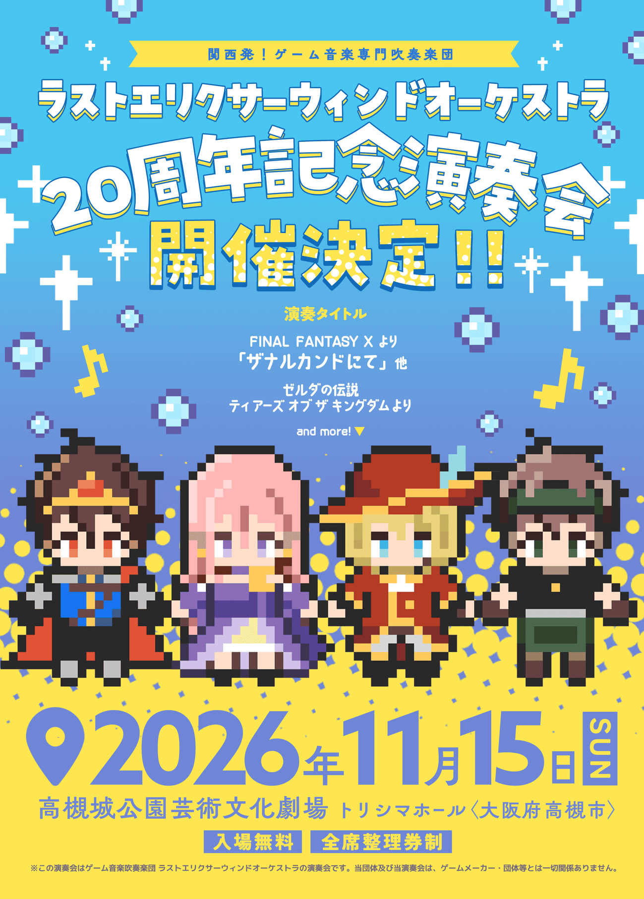 演奏会 ラストエリクサーウィンドオーケストラ 20周年記念演奏会 2026年2月21日ラストエリクサーウィンドオーケストラ 20周年記念演奏会 演奏会情報 開催日時 :2026年11月15日(日 […] Read more